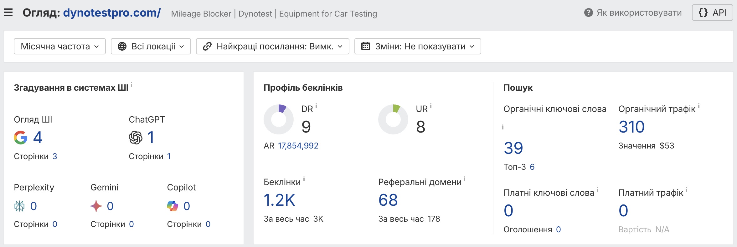 Нижче на скріншотах показано основні показники інтернет магазину Dynotest за період роботи з Tarmedia