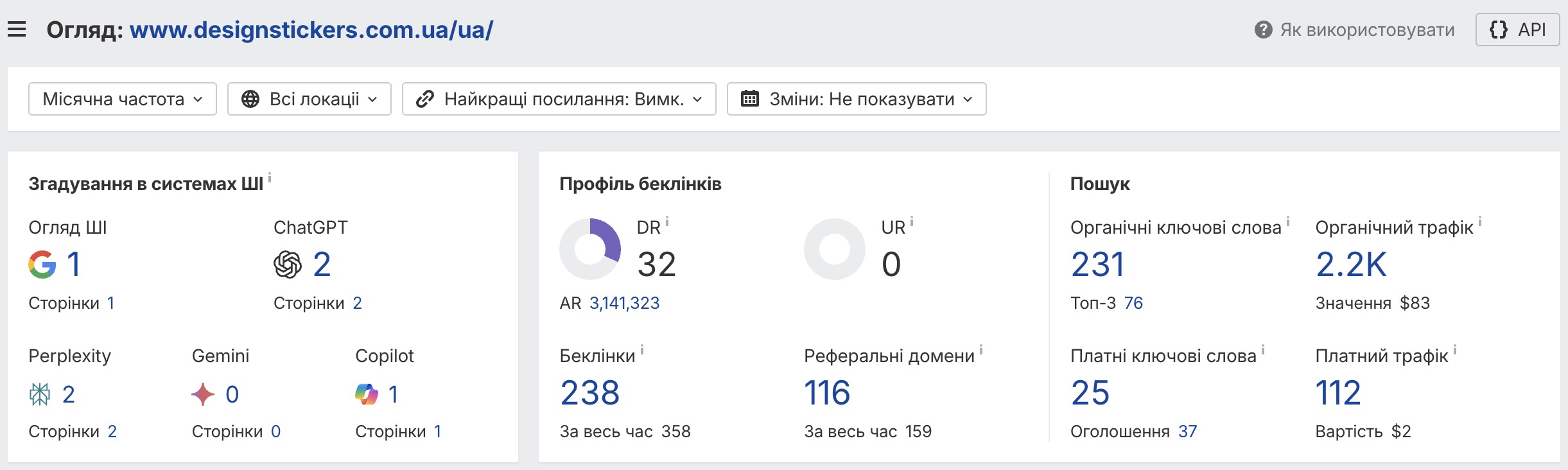 Результат просування інтернет магазину Design Stickers