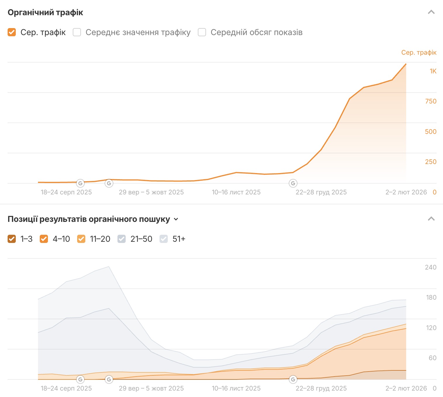 - Зростання органічного трафіку на сайт у 2,5 рази за останній за 1 рік