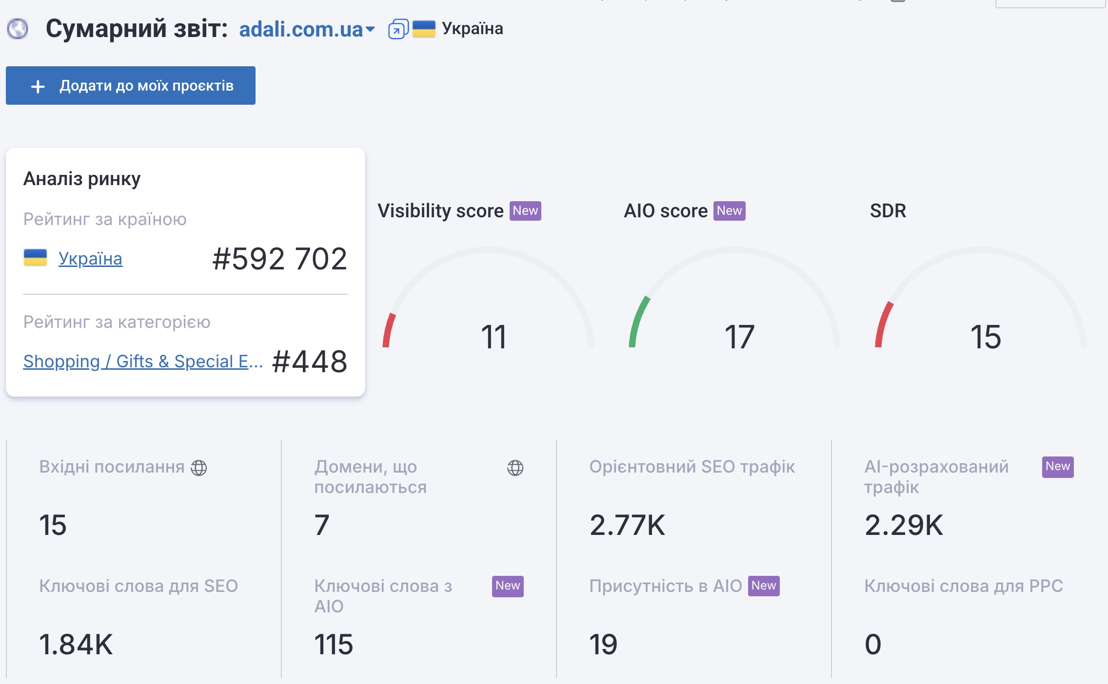 Результат просування інтернет магазину Adali