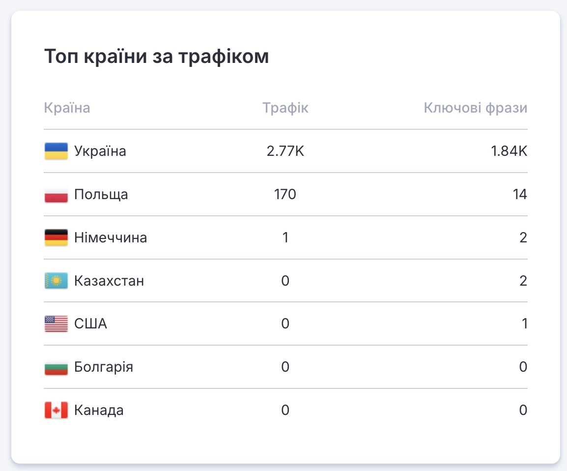 На основі отриманих даних сформовано стратегію, орієнтовану на залучення максимально цільового трафіку з України з високим потенціалом для продажів.