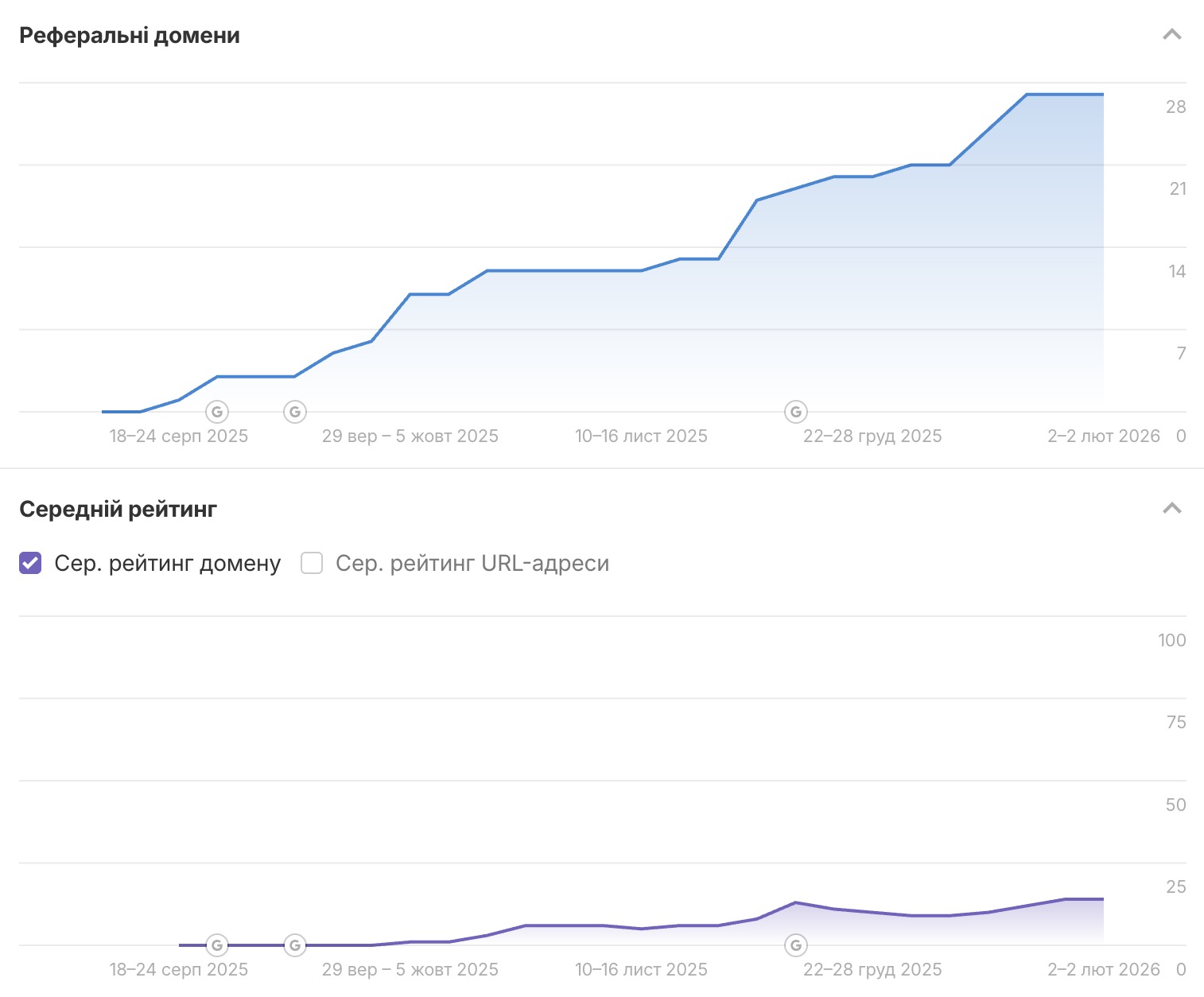 - Посилення авторитету (трасту) домену, що підвищило довіру користувачів та пошукових систем