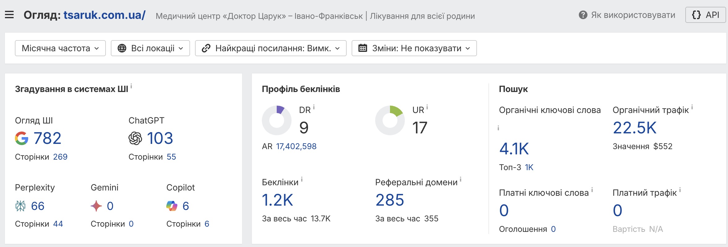Для підвищення позицій у конкурентній медичній ніші було реалізовано поступову стратегію лінкбілдингу: