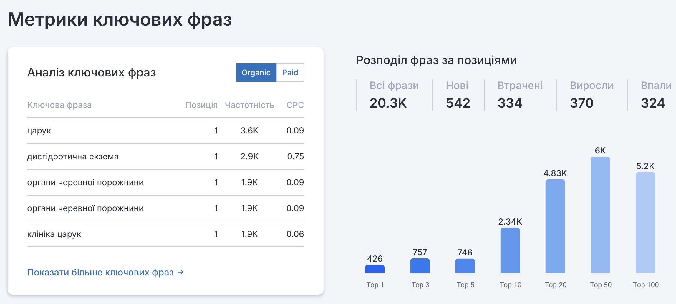 Аналіз конкурентів у пошуковій видачі за ключовими медичними запитами.