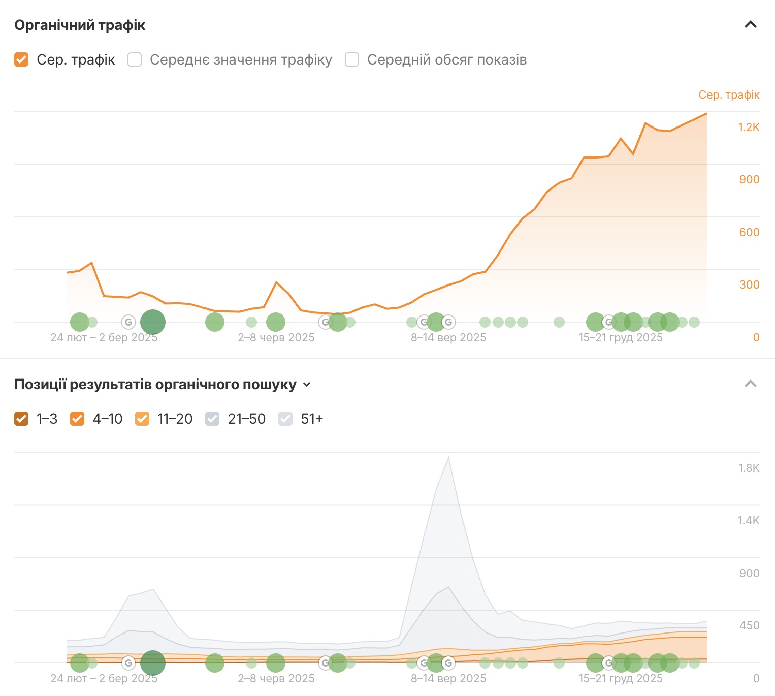- Органічний трафік сайту зріс майже в 2,5 раза.