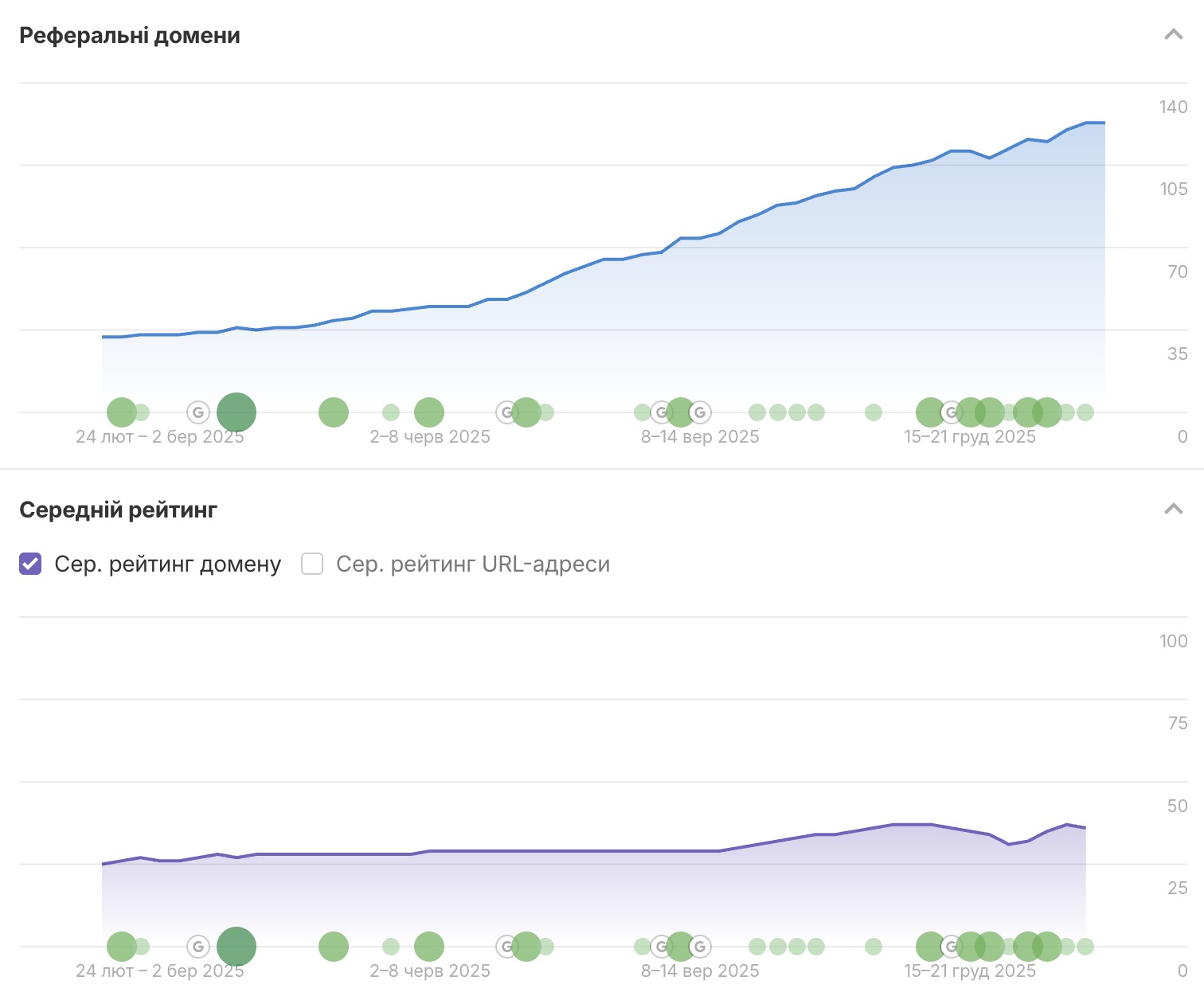 Для підвищення авторитету сайту була реалізована поступова стратегія лінкбілдингу: