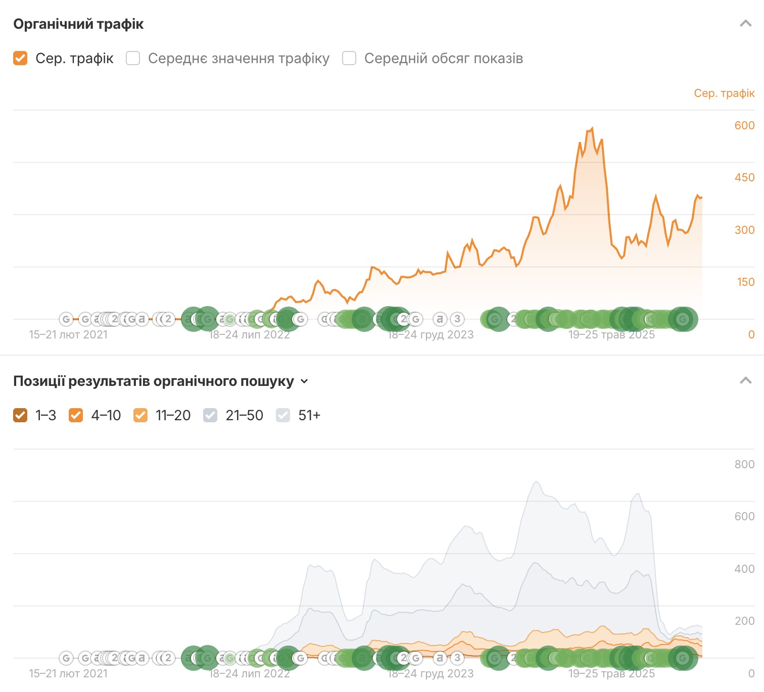 Посилення авторитету (трасту) домену, що позитивно вплинуло на позиції у конкурентних запитах