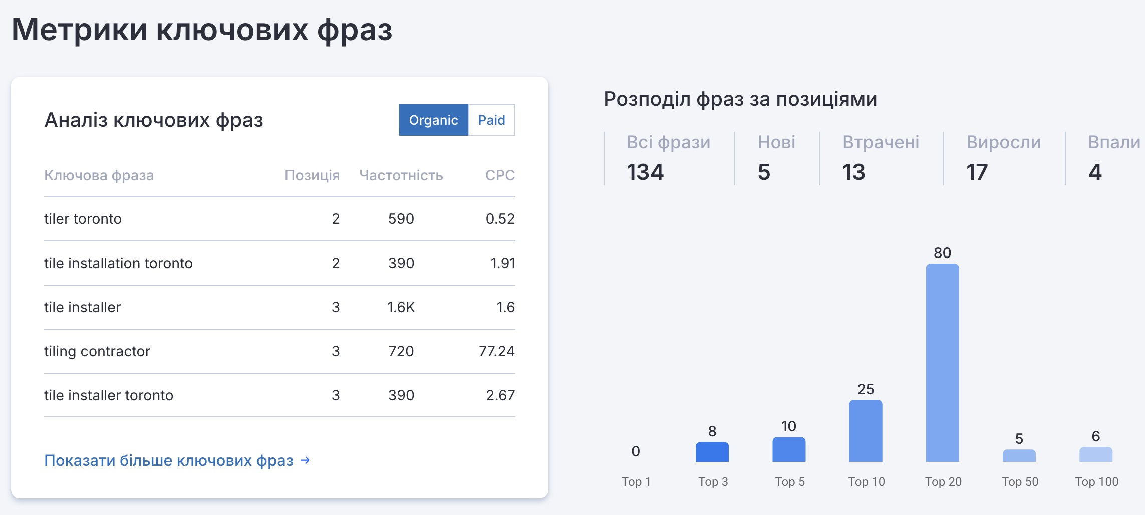 Проєкт з SEO-просування сайту послуг з укладання плитки у Торонто. Роботи охоплювали повний цикл SEO — від аналізу локального ринку та конкурентів до технічної, контентної й зовнішньої оптимізації сайту. Основний акцент було зроблено на комерційні та локальні запити, пов’язані з плитковими роботами для житлових і комерційних об’єктів.