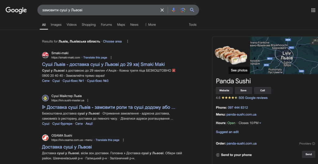 Локальный | Пользователь ищет местную информацию, связанную с географическим расположением. | «Кофейни рядом», «Парикмахерская в центре Львова» | Поиск местных услуг или мест |