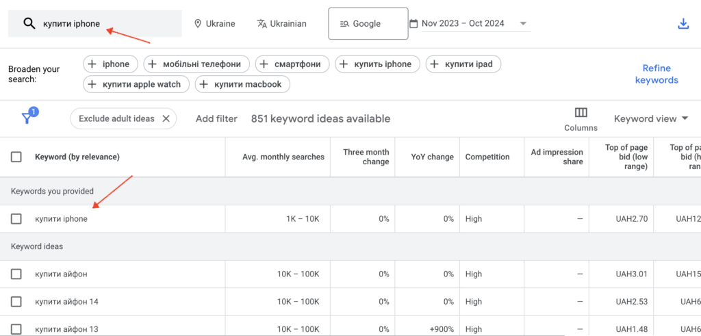 - Четкий запрос, например «купить iPhone 15 в Киеве», демонстрирует намерение совершить покупку.