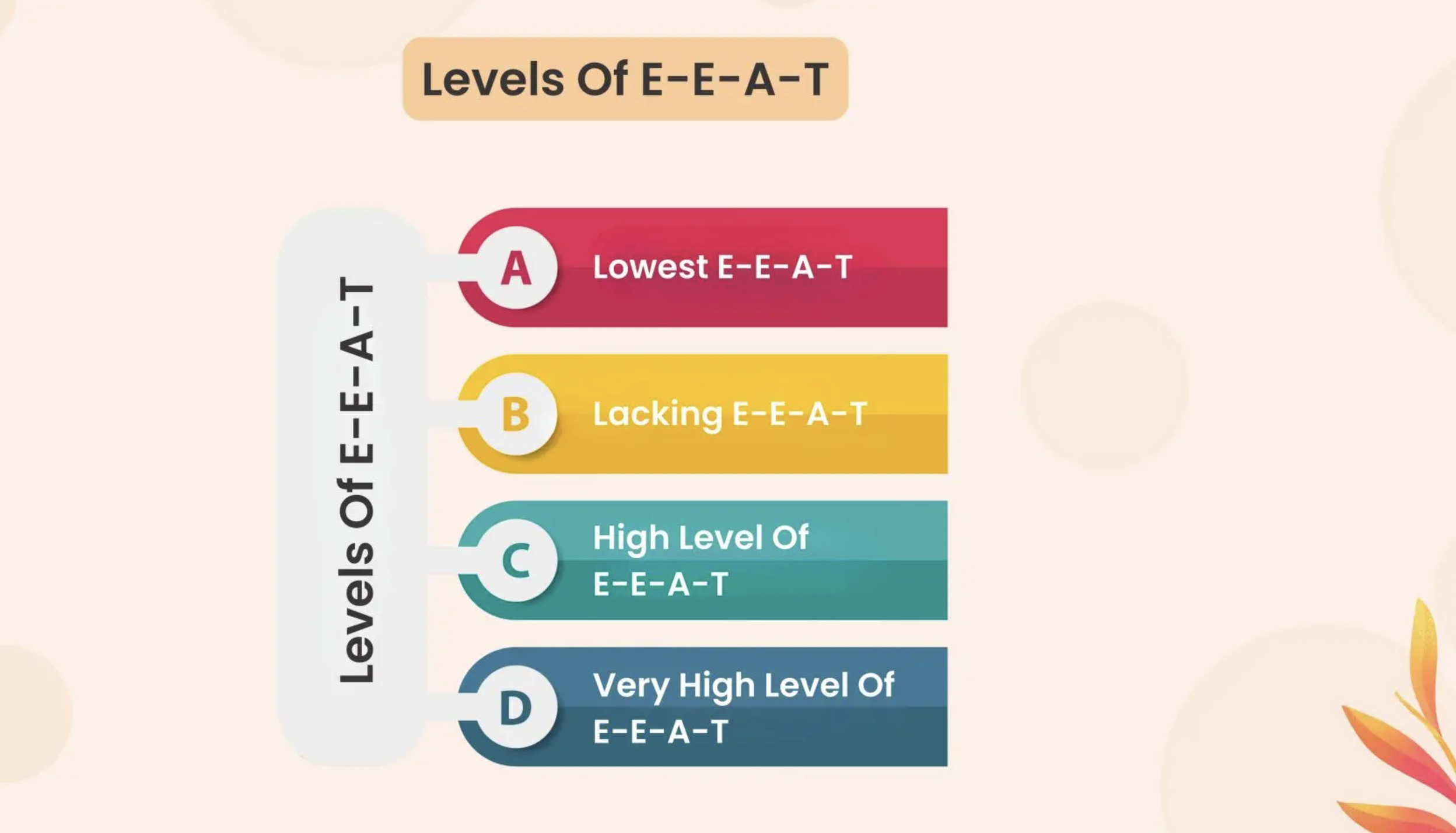 У оновленому керівництві SQR Google поділяє концепцію EEAT на кілька рівнів, що варіюються від найнижчого до найвищого. Ця шкала включає також проміжні значення, які допомагають точніше оцінити якість контенту. Ось докладний опис кожного рівня: