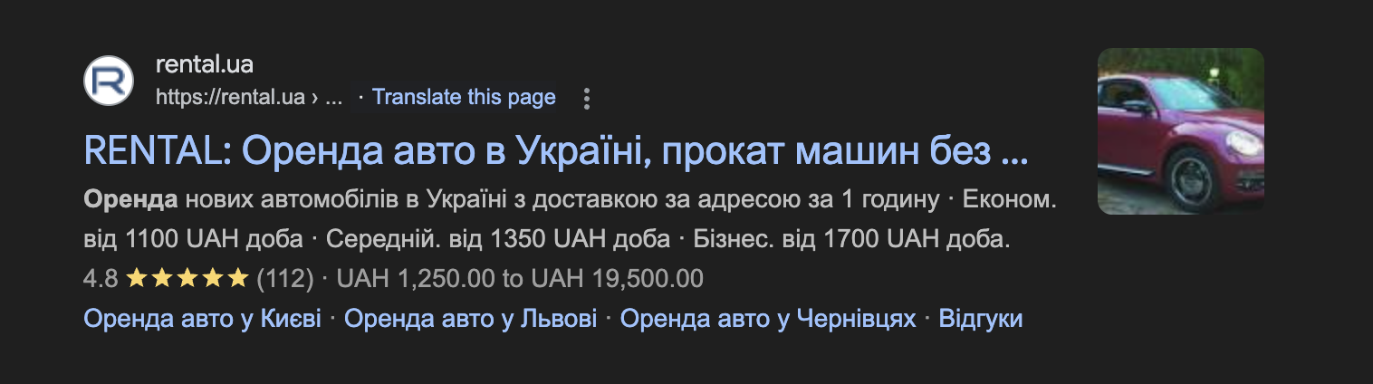 - Інформація про ціни та послуги: за допомогою мікророзмітки можна також відображати вартість товарів або послуг безпосередньо в пошукових системах, що полегшує користувачам процес вибору. Це позитивно впливає на досвід користувачів і стимулює їх до переходу на ваш сайт.